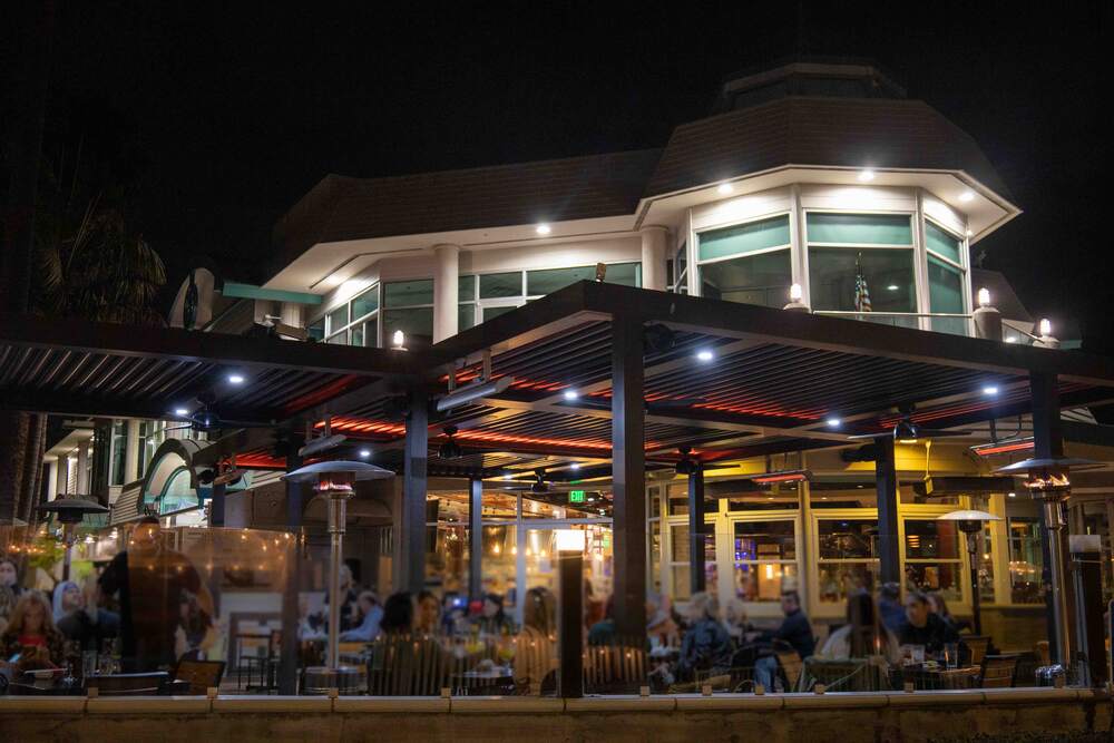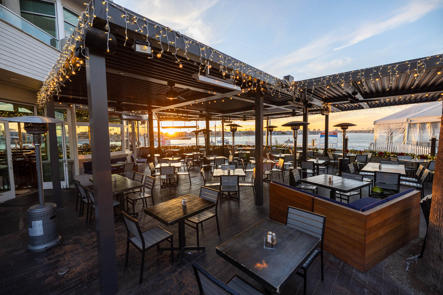 The Outdoor Patio is a premier year-round option with full weekday availability and weekend event windows from September through April. This private waterfront setting includes built-in microphone, large-screen TV, and Bluetooth capabilities. Hosts can also add a private satellite bar and live entertainment for a dynamic guest experience.